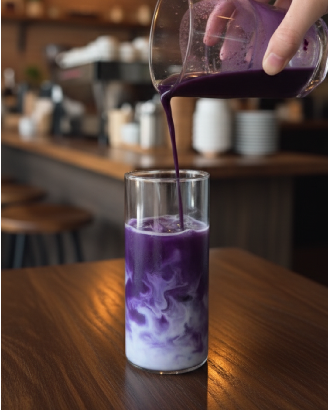 Riche en nutriments, sans caféine et pleine de couleur, la poudre d’ube offre une énergie douce, stable et bienveillante pour le corps — une alternative aussi belle que bonne pour commencer la journée différemment.
